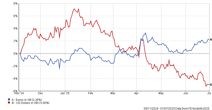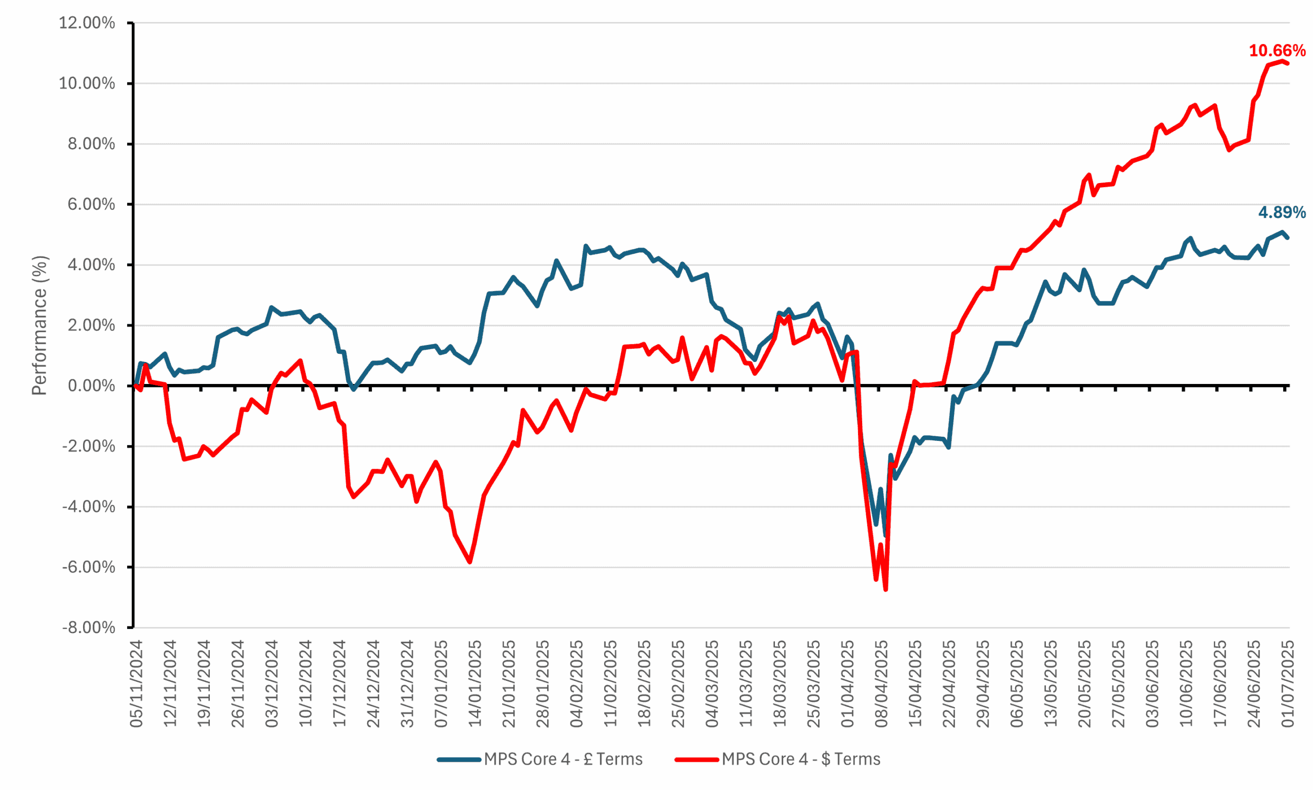 IBOSS Portfolio 4 performance- Sterling vs Dollar- 05/11/2024-01/07/2025