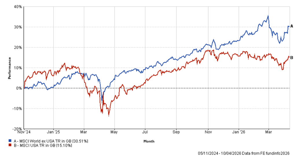 In the early days of the second Trump presidency, US markets hoped for a repeat of his first term. A period characterised by the outperformance of US assets. By December it became clear that this was a more emboldened, better organised administration with a radically different agenda to the first iteration. Trump 2.0 has been more of a tailwind for other markets than the US, with World ex-US outperforming by 100%.